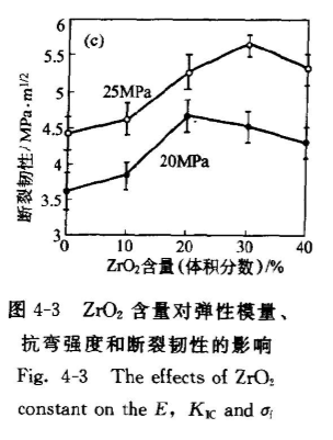 再者,由于Al2O的熱膨脹系數(shù)約為8×10-·℃-1,小于ZrO熱膨脹系數(shù),所以當(dāng)AIO)在ZrO2基體中分布時,Al2O)晶粒處于壓應(yīng)力狀態(tài),AlO與ZrO2在晶界處結(jié)合良好,具有良好的晶界強度,使裂紋不易在AlO與ZrO2晶界形成,因此,Al2O的加人使ZO2陶饒的晶界得到化,ZrO2相變能提高,從而使ZrO2陶瓷的抗彎強度、斷裂韌性得到提高。