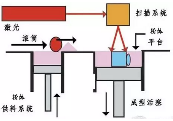 激光選區(qū)燒結(jié)技術(shù)工作原理示意圖